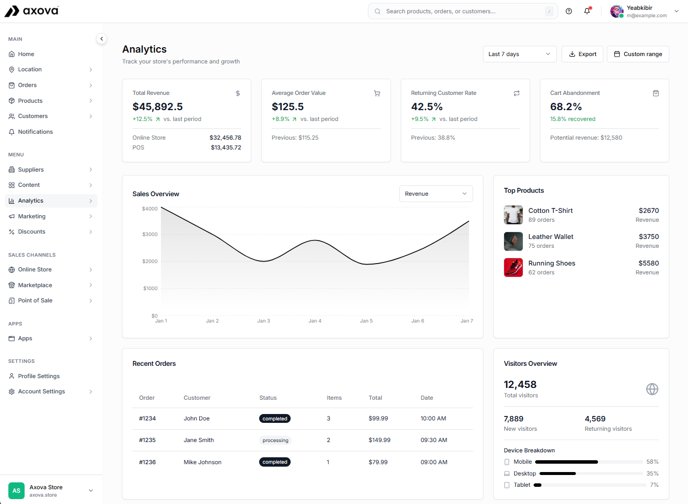 From single-location stores to multi-location enterprises, Axova delivers the control, speed, and visibility growing teams need.